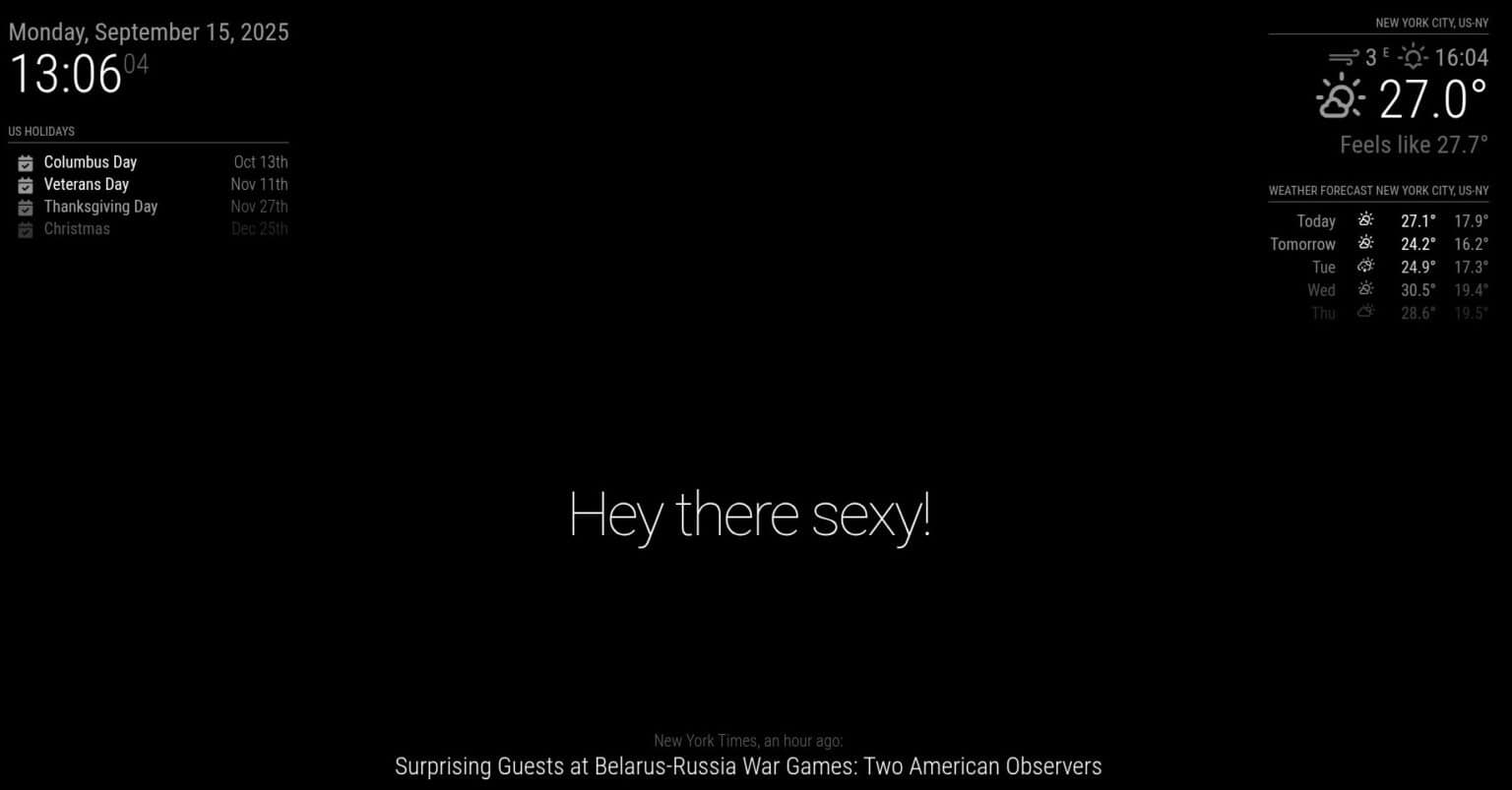 Todo esto ya es bastante bueno, tienes un panel de control ordenado con la fecha/hora, calendario, clima y feed de noticias. Pero esto es solo el comienzo.