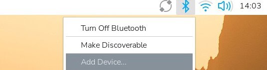 Pero si por alguna razón el Bluetooth está deshabilitado en tu Pi (icono en gris), haz clic en él y selecciona “Turn On Bluetooth” en el menú desplegable. Luce así:
